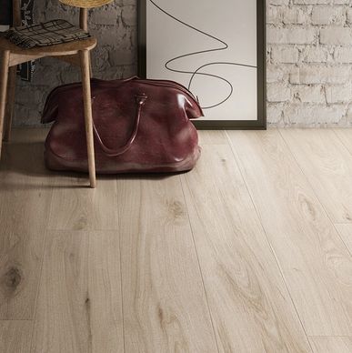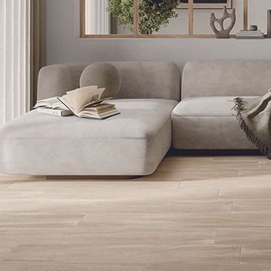 Extra large wood look tile at almost six feet long, realistic textured graining.